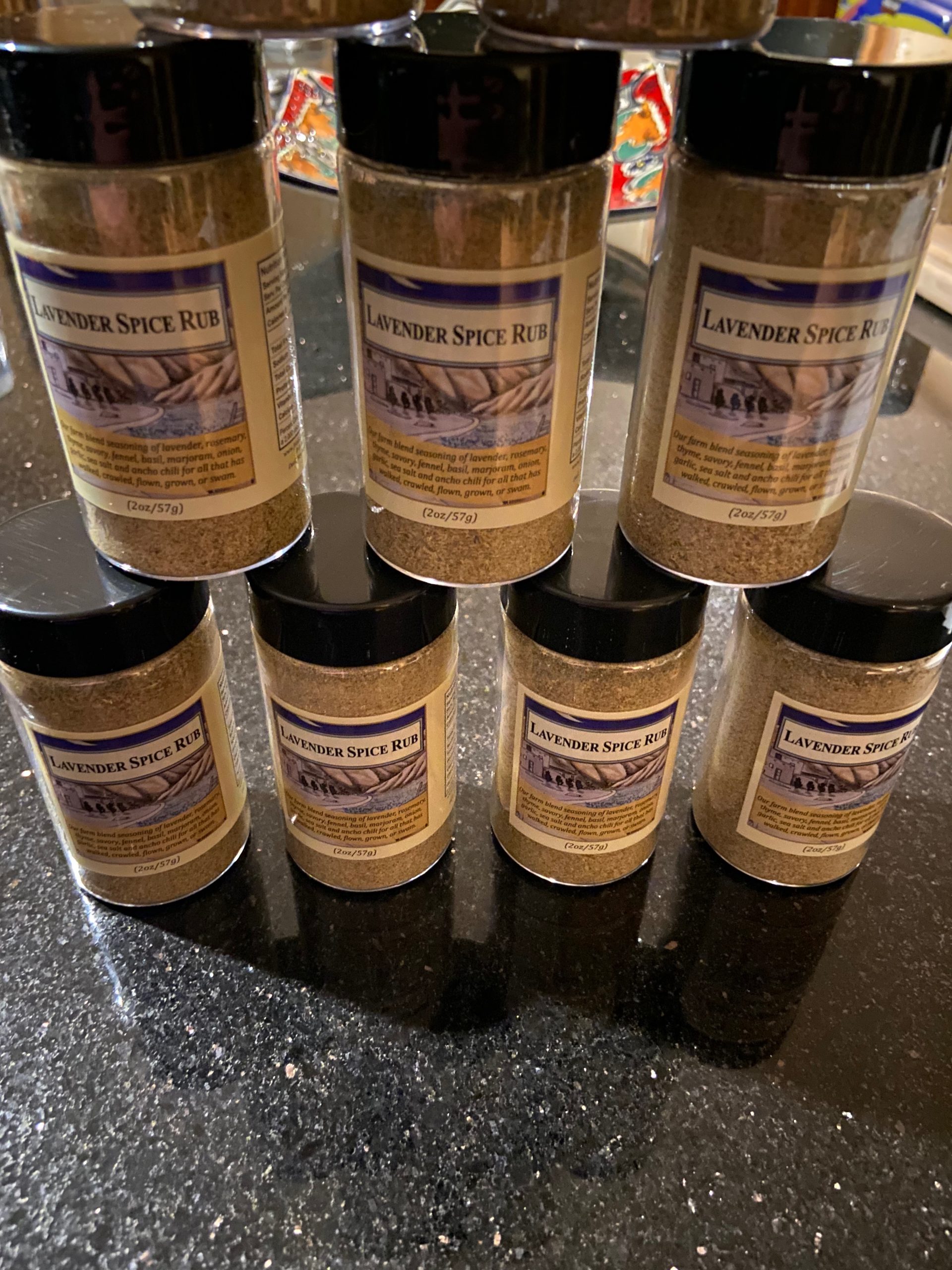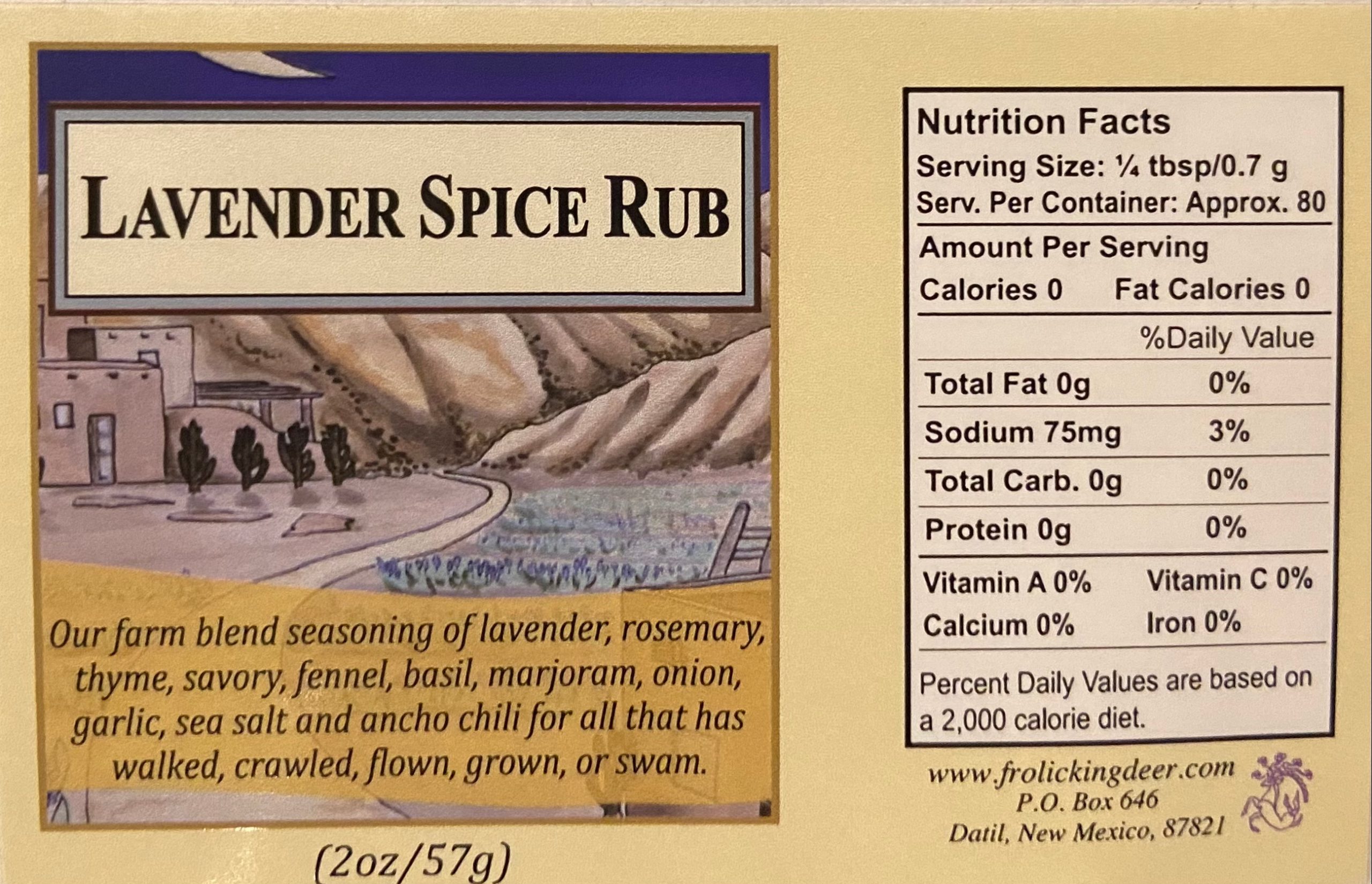 Our farm blend seasoning of lavender, rosemary, thyme, savory, fennel, basil, marjoram, onion, garlic, ancho chile, and salt for all that has walked, crawled, flown, grown, or swam.